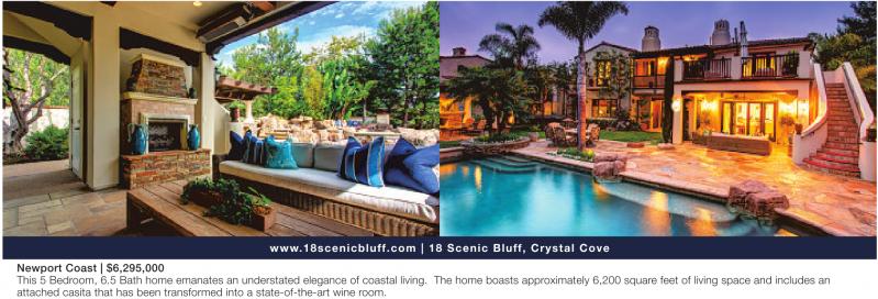 Newport Coast | $6,295,000 This 5 Bedroom, 6.5 Bath home emanates an understated elegance of coastal living. The home boasts approximately 6,200 square feet of living space and includes an attached casita that has been transformed into a state-of-the-art wine room.