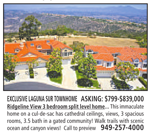 EXCLUSIVE LAGUNA SUR TOWNHOME ASKING: $799-$839,000 Ridgeline View 3 bedroom splitlevel home... This immaculate
