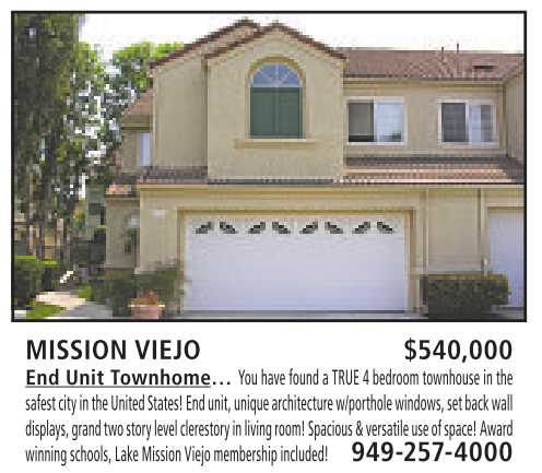 MISSION VIEJO $540,000 End Unit Townhome… You have found aTRUE 4bedroom townhouse inthe