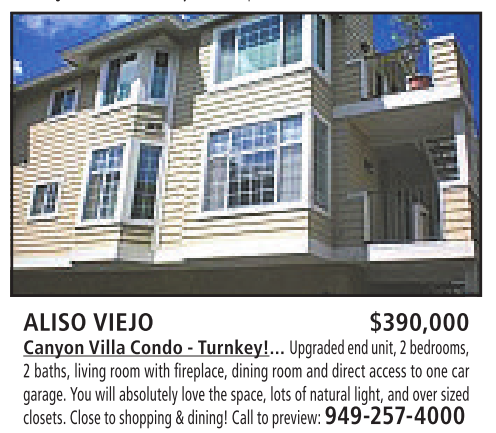ALISO VIEJO $390,000 Canyon VillaCondo-Turnkey!... Upgraded end unit,2bedrooms,