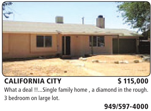 CALIFORNIA CITY $ 115,000 What adeal!!...Single familyhome ,adiamond in therough. 3bedroom on largelot.
