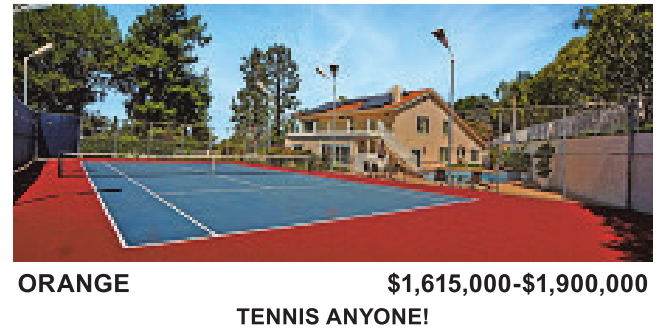 ORANGE $1,615,000-$1,900,000 TENNIS ANYONE!