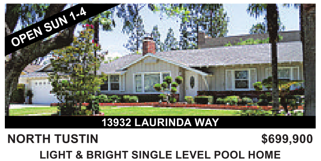 NORTH TUSTIN $699,900 LIGHT & BRIGHT SINGLE LEVEL POOL HOME