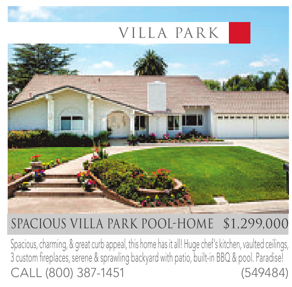 VILLA PARK SPACIOUS VILLA PARK POOL-HOME $1,299,000 Spacious,charming, &greatcurbappeal, this homehas it all! Huge chef’s kitchen, vaultedceilings, 3custom fireplaces, serene &sprawling backyard with patio, built-in BBQ &pool. Paradise! CALL (800) 387-1451 (549484) See also