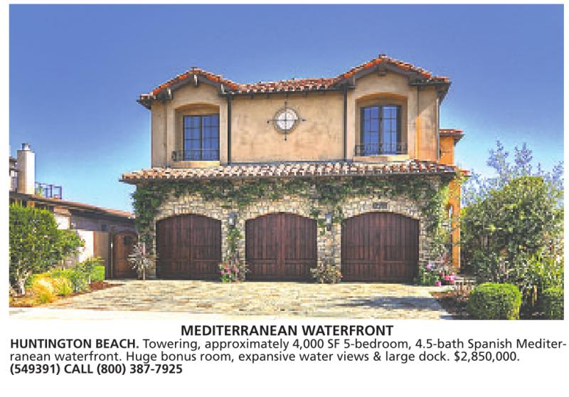 MEDITERRANEAN WATERFRONT HUNTINGTON BEACH. Towering, approximately 4,000 SF 5-bedroom, 4.5-bath Spanish Mediterranean