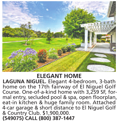 4-car garage & short distance to El Niguel Golf & Country Club. $1,900,000.