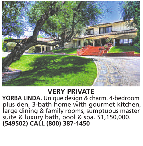 VERY PRIVATE YORBA LINDA. Unique design &charm. 4-bedroom