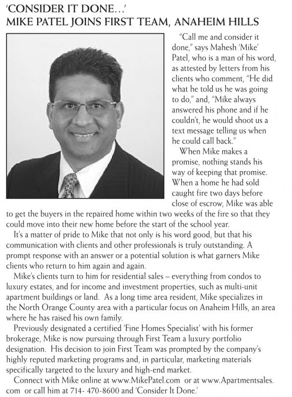 “Call me and consider it done,” says Mahesh ‘Mike’ Patel, who is a man of his word, as attested by letters from his clients who comment, “He did what he told us he was going to do,” and, “Mike always answered his phone and if he couldn’t, he would shoot us a text message telling us when he could call back.”