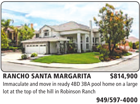 RANCHO SANTA MARGARITA $814,900 Immaculate andmove in ready4BD 3BApoolhome on alarge lotatthe topofthe hill in Robinson Ranch 949/597-4000