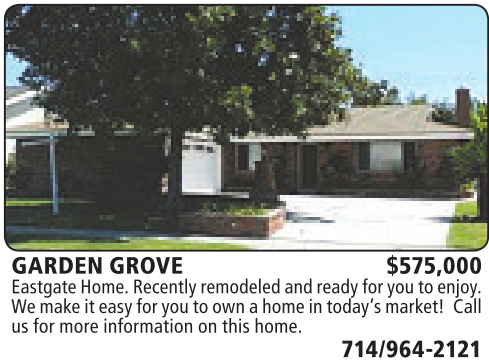 GARDEN GROVE $575,000 EastgateHome.Recentlyremodeledand readyfor youtoenjoy. We make it easyfor youtoown ahome in today’smarket! Call us formore informationonthis home.
