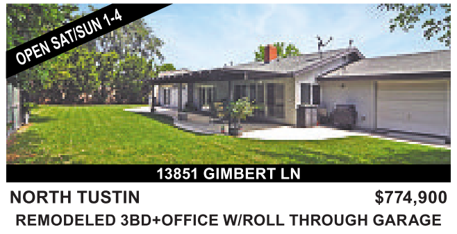 13851 GIMBERT LN NORTH TUSTIN $774,900 REMODELED 3BD+OFFICE W/RO