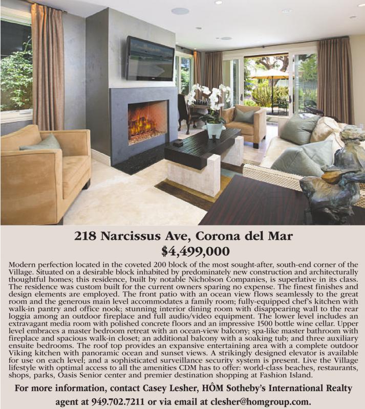 For more information, contact Casey Lesher, HÔM Sotheby’s International Realty agent at 949.702.7211 or via email at clesher@homgroup.com.