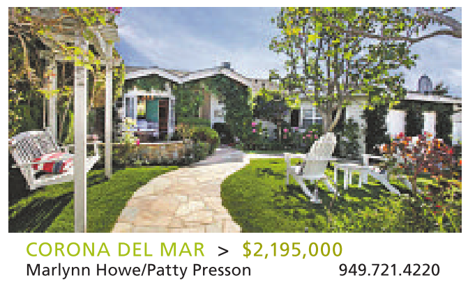 CORONA DEL MAR > $2,195,000 Marlynn Howe/Patty Presson 949.721.4220