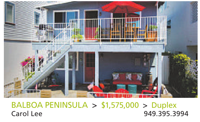 BALBOA PENINSULA > $1,575,000 > Duplex Carol Lee 949.395.3994