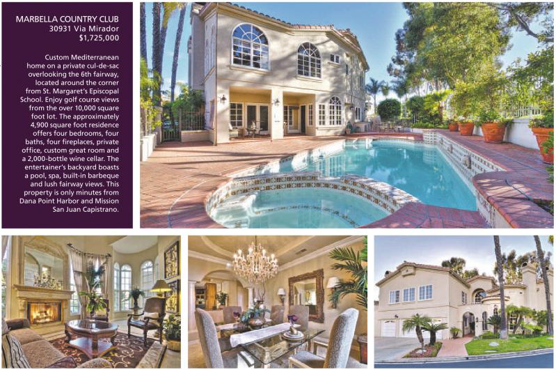 Custom Mediterranean home on a private cul-de-sac overlooking the 6th fairway, located around the corner from St. Margaret’s Episcopal School. Enjoy golf course views from the over 10,000 square foot lot. The approximately 4,900 square foot residence offers four bedrooms, four baths, four fireplaces, private office, custom great room and a 2,000-bottle wine cellar. The entertainer’s backyard boasts a pool, spa, built-in barbeque and lush fairway views. This property is only minutes from Dana Point Harbor and Mission San Juan Capistrano.