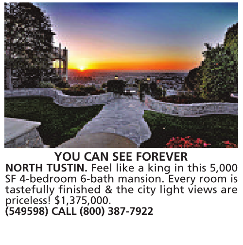 YOU CAN SEE FOREVER NORTH TUSTIN. Feel like a king in this 5,000