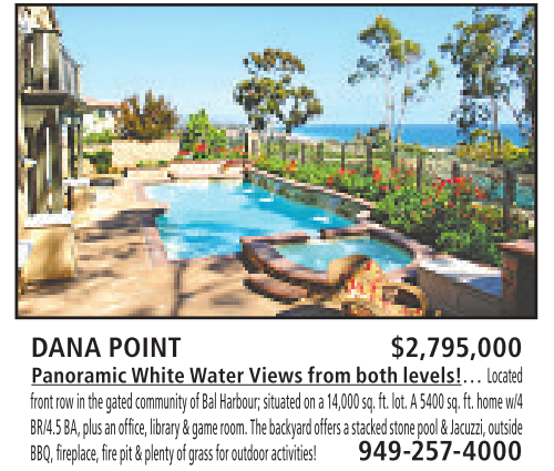 front row in the gated community ofBal Harbour; situated ona14,000 sq. ft. lot. A5400 sq. ft. home w/4 BR/4.5 BA,plusanoffice,library &game room. Thebackyard offersastacked stone pool&Jacuzzi, outside BBQ,fireplace,fire pit &plentyofgrassfor outdooractivities! 949-257-4000