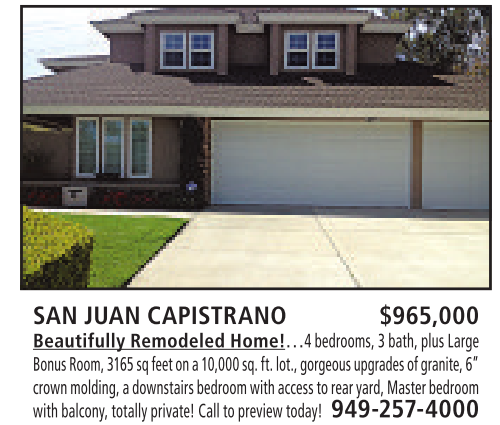 SAN JUAN CAPISTRANO $965,000 Beautifully Remodeled Home!…4bedrooms,3bath, plus Large