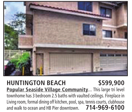 townhomehas 3bedroom2.5 bathswithvaulted ceilings.Fireplace in Living room,formal diningoff kitchen,pool, spa, tennis courts,clubhouse andwalk to ocean andHBPierdowntown. 714-969-6100