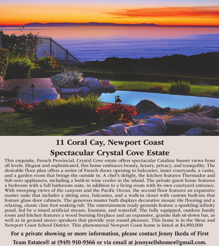 well as in ground stereo speakers that provide year round pleasure. This home is in the Mesa and Newport Coast School District. This phenomenal Newport Coast home is listed at $4,850,000