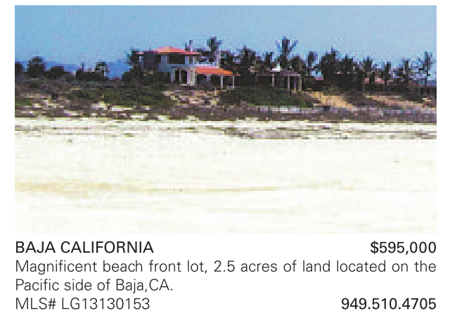 BAJA CALIFORNIA $595,000 Magnificent beach front lot, 2.5 acres of land located on the Pacific side of Baja,CA. MLS# LG13130153 949.510.4705