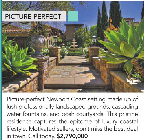 PICTURE PERFECT Picture-perfect Newport Coast setting made up of lush professionally landscaped grounds, cascading water fountains, and posh courtyards. This pristine residence captures the epitome of luxury coastal lifestyle. Motivated sellers, don’t miss the best deal in town. Call today. $2,790,000