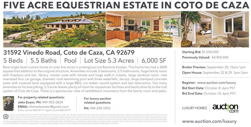 31592 Vinedo Road, Coto de Caza, CA 92679 5 Beds | 5.5 Baths | Pool | Lot Size 5.3 Acres | 6,000 SF