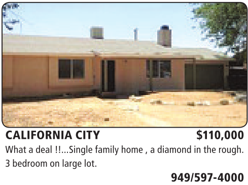 CALIFORNIA CITY $110,000 What adeal!!...Single familyhome ,adiamond in therough. 3bedroom on largelot.