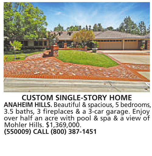 3.5 baths, 3 fireplaces & a 3-car garage. Enjoy over half an acre with pool & spa & a view of Mohler Hills. $1,369,000. (550009) CALL (800) 387-1451