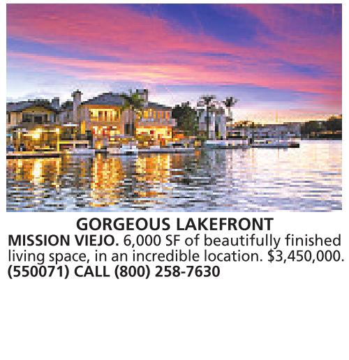 GORGEOUS LAKEFRONT MISSION VIEJO. 6,000 SF of beautifully finished living space, in an incredible location. $3,450,000. (550071) CALL (800) 258-7630
