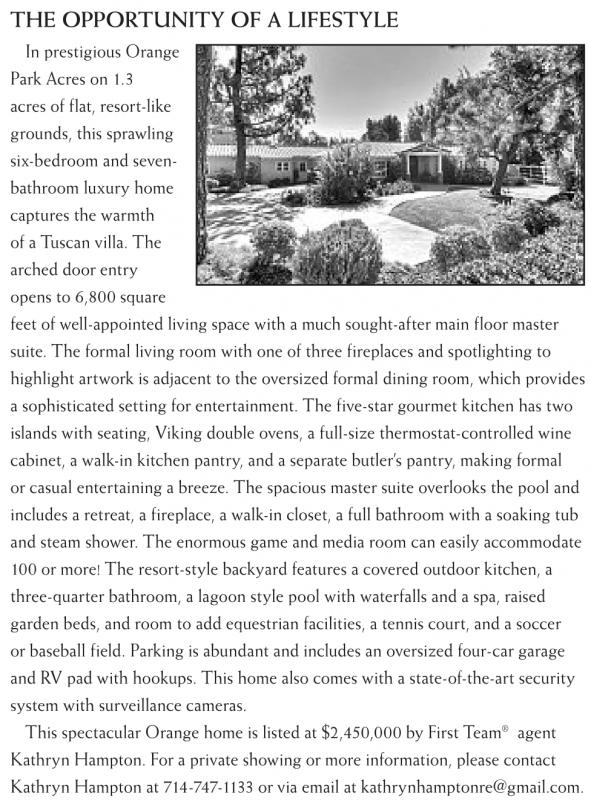 This spectacular Orange home is listed at $2,450,000 by First Team ®