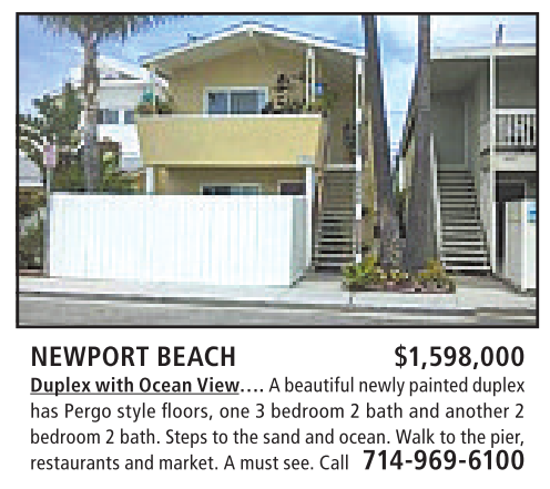 DuplexwithOcean View…. Abeautifulnewly painted duplex has Pergo style floors, one 3bedroom 2bath and another 2 bedroom2bath. Stepstothe sand andocean. Walk to thepier, restaurantsand market.Amust see. Call 714-969-6100