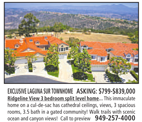 EXCLUSIVE LAGUNA SUR TOWNHOME ASKING: $799-$839,000 Ridgeline View 3bedroom splitlevel home... This immaculate