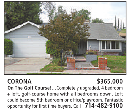 + loft, golf-course home with all bedrooms down. Loft could become 5th bedroom or office/playroom. Fantastic opportunityfor first time buyers.Call 714-482-9100