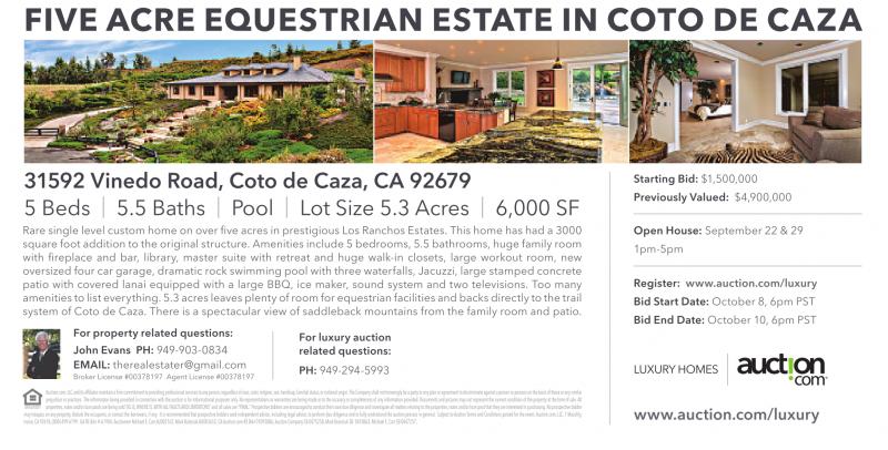 Register: www.auction.com/luxury Bid Start Date: October 8, 6pm PST Bid End Date: October 10, 6pm PST