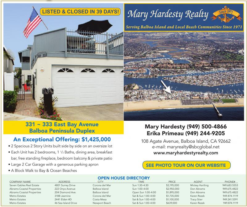 108 Agate Avenue, Balboa Island, CA 92662 e-mail: maryrealty@sbcglobal.net