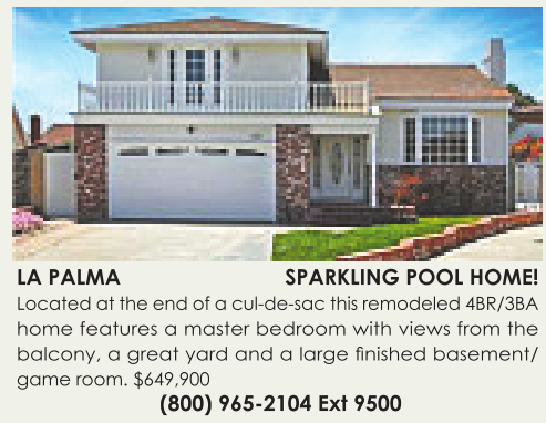 Located at the end of acul-de-sac this remodeled 4BR/3BA home features a master bedroom with views from the balcony, a great yard and a large finished basement/ game room. $649,900 (800) 965-2104 Ext 9500