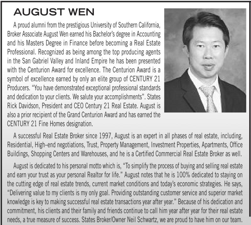 Aproud alumni from the prestigious University of Southern California, Broker Associate August Wen earned his Bachelor’s degree in Accounting