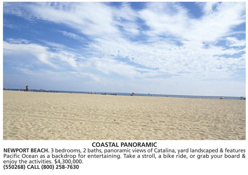 COASTAL PANORAMIC NEWPORTBEACH. 3bedrooms, 2baths, panoramic views of Catalina, yard landscaped &features Pacific Ocean as a backdrop for entertaining. Take a stroll, a bike ride, or grab your board & enjoy the activities. $4,300,000. (550268) CALL (800) 258-7630