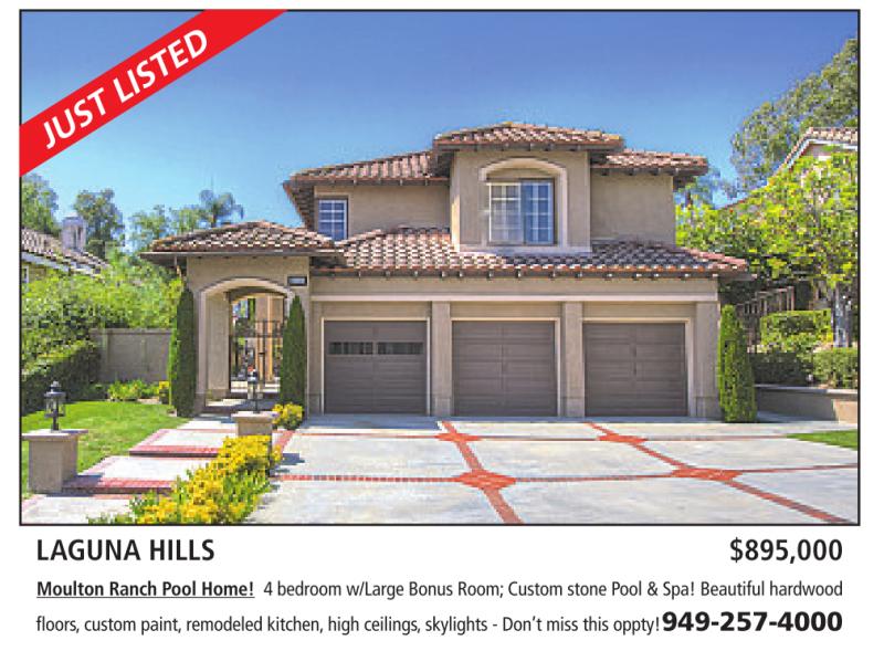 Moulton Ranch Pool Home! 4bedroom w/Large Bonus Room; Custom stone Pool &Spa! Beautiful hardwood floors,custom paint, remodeled kitchen, high ceilings,skylights -Don’t miss this oppty!949-257-4000