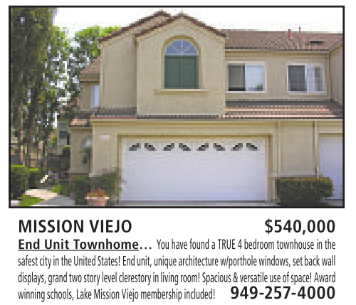 MISSION VIEJO $540,000 End Unit Townhome… You have found aTRUE 4bedroom townhouse in the
