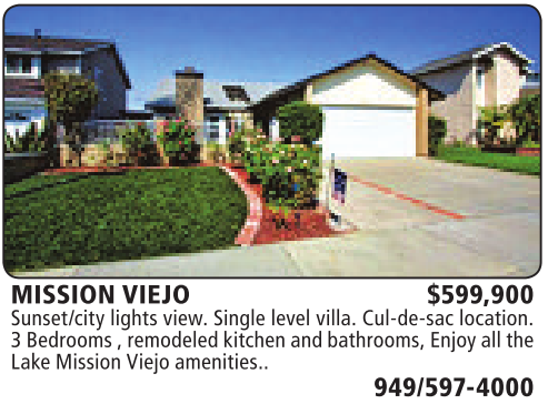 MISSION VIEJO $599,900 Sunset/city lights view. Single level villa. Cul-de-sac location. 3Bedrooms,remodeledkitchen andbathrooms,Enjoy allthe Lake MissionViejo amenities..