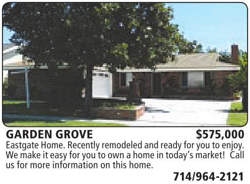 GARDEN GROVE $575,000 EastgateHome.Recentlyremodeledand readyfor youtoenjoy. We make it easyfor youtoown ahome in today’smarket! Call us formore informationonthis home.