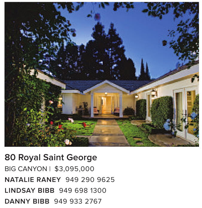 BIG CANYON | $3,095,000 NATALIE RANEY 949 290 9625 LINDSAY BIBB 949 698 1300 DANNY BIBB 949 933 2767