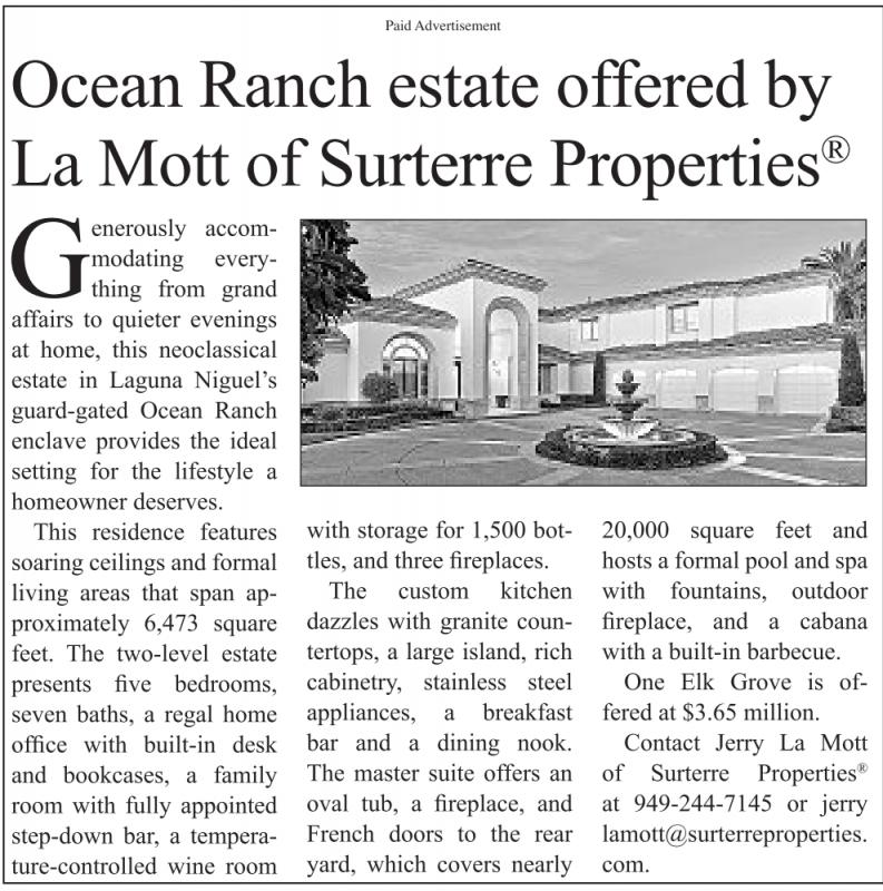 Ocean Ranch estate offered by La Mott of Surterre Properties