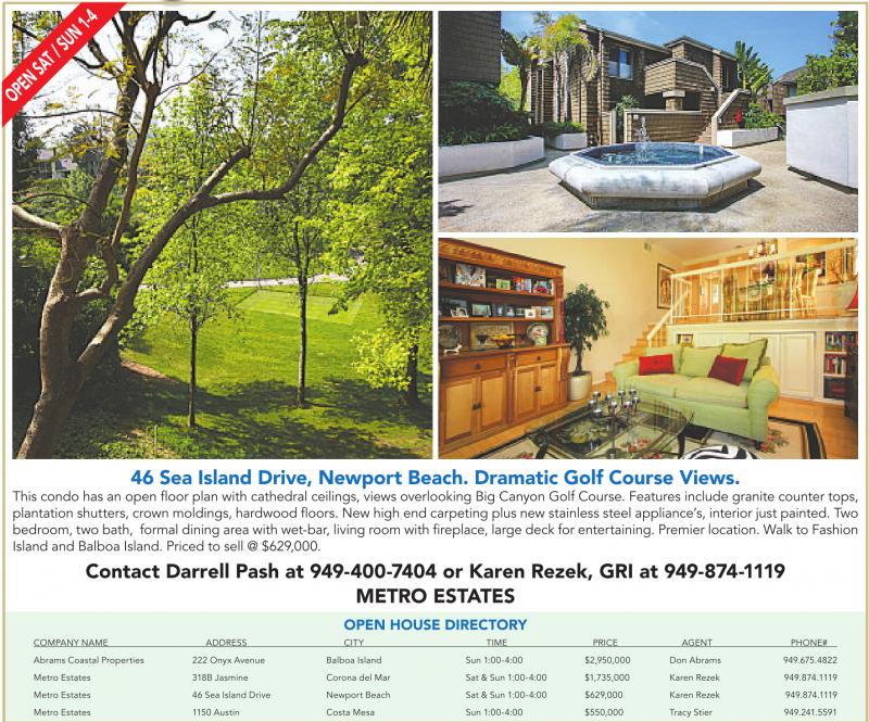Metro Estates 46Sea Island Drive Newport Beach Sat &Sun 1:00-4:00 $629,000 Karen Rezek 949.874.1119