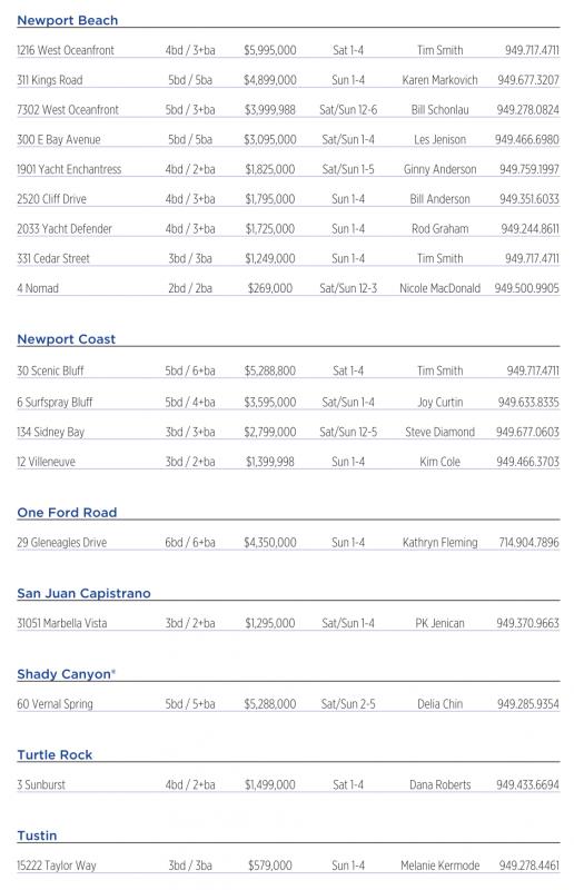 1216 West Oceanfront 4bd /3+ba $5,995,000 Sat 1-4 Tim Smith 949.717.4711