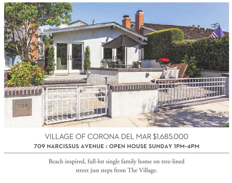 VILLAGE OF CORONA DEL MAR $1,685,000 709 NARCISSUS AVENUE : OPEN HOUSE SUNDAY 1PM-4PM