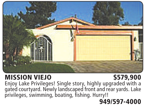 MISSION VIEJO $579,900 Enjoy Lake Privileges! Single story, highly upgraded with a gatedcourtyard. Newly landscaped frontand rear yards.Lake privileges,swimming, boating, fishing.Hurry!!