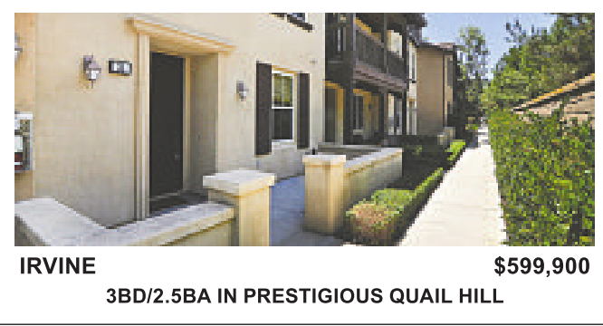 IRVINE $599,900 3BD/2.5BA IN PRESTIGIOUS QUAIL HILL